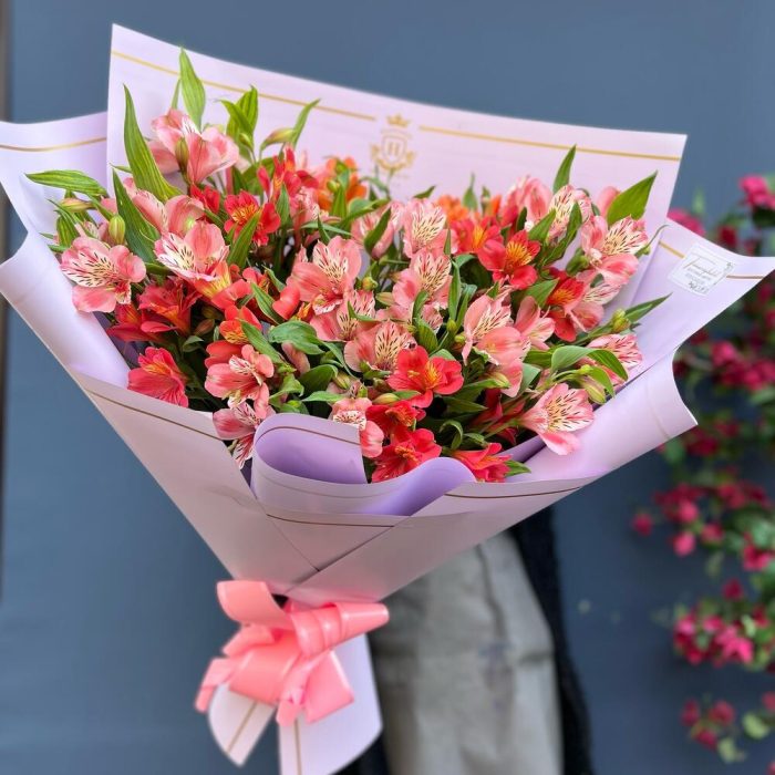 Альстромерия – 15 шт. Лента – 1 шт. Упаковка дизайнерская – 5 шт.