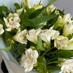 Альстромерия – 9 шт.Упаковка дизайнерская – 2 шт.Лента атласная – 1 шт.Зелень – 2 шт.