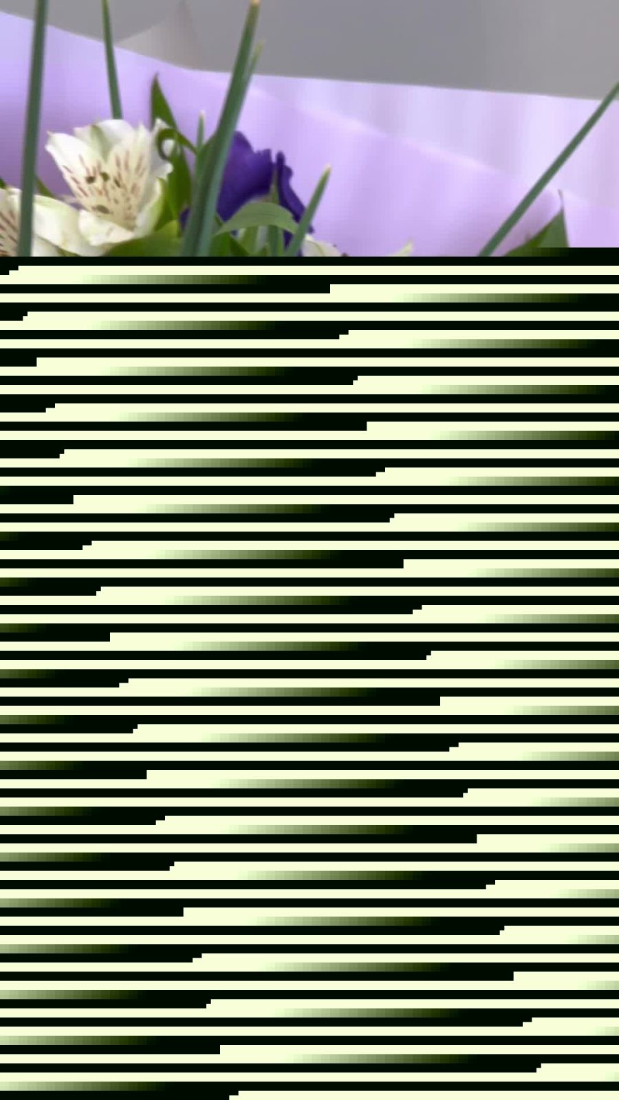 Альстромерия – 6 шт.Ирис – 7 шт.Зелень – 2 шт.Упаковка дизайнерская – 2 шт.Лента атласная – 2 шт.