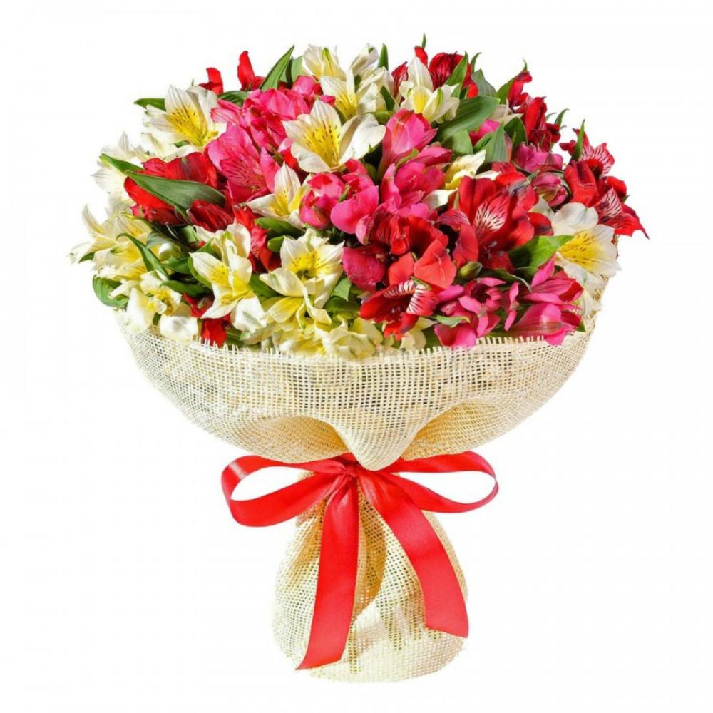 Альстромерия – 25 шт.Упаковка – 1 шт.Атласная лента – 1 шт.