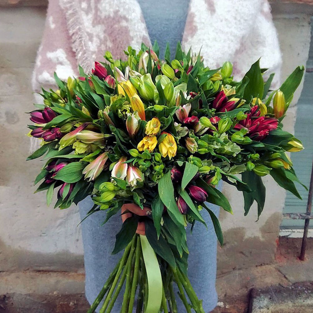 Пышный букет из красивых, разноцветных альстромерий – это прекрасный подарок к любому торжеству. Яркие краски этого букета несомненно поднимут настроение и будут долго радовать получателя, даря позитив и хорошие эмоции!