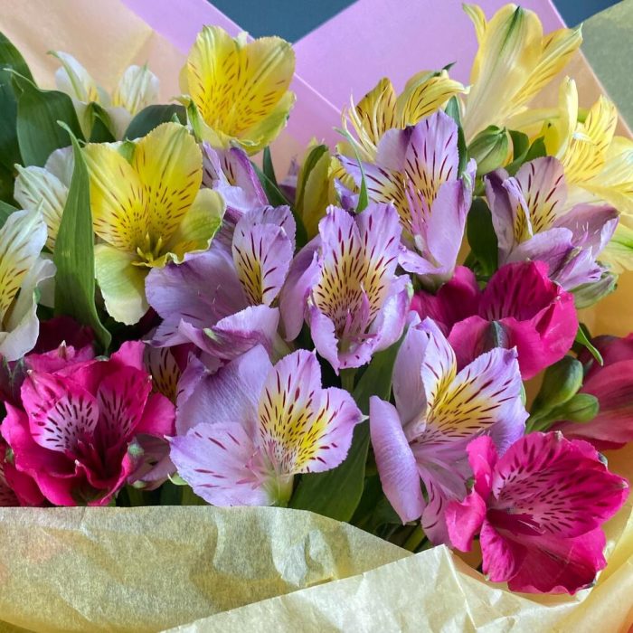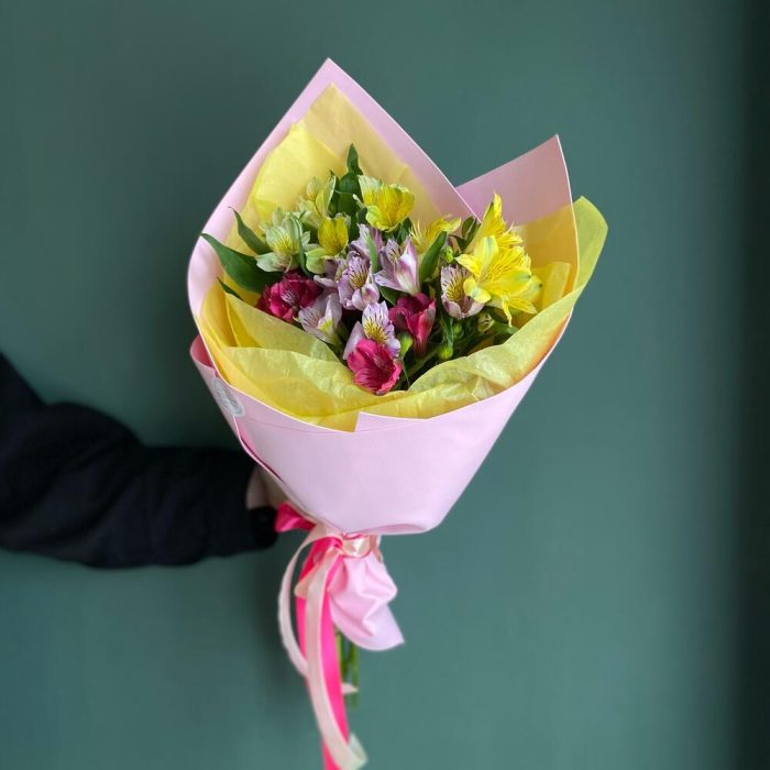 Альстромерия – 7 шт.Упаковка дизайнерская – 1 шт.Открыточка с вашими пожеланиями – 1 шт.уходовое средство для цветов – 1 шт.транспортировочная упаковка – 1 шт.