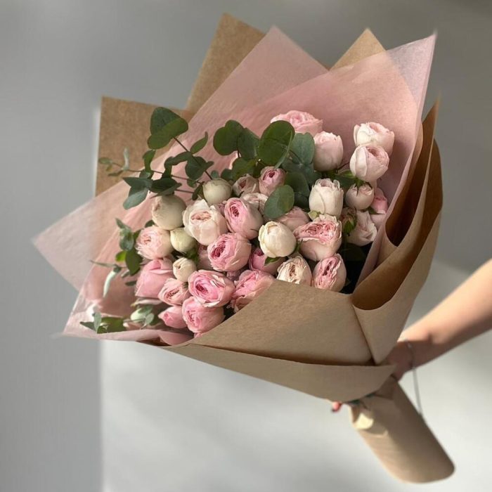 Большой букет из кустовой пионовидной розы "Нежные чувства"