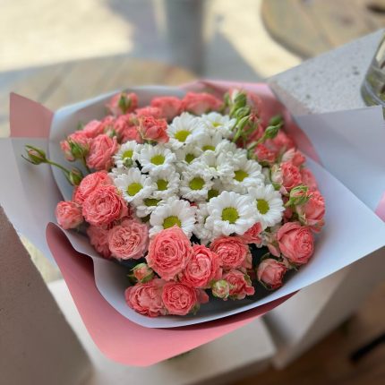 15 кустовых пионовидных роз сильва пинк. Букет 24 KimFlo