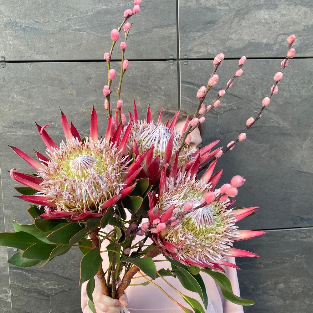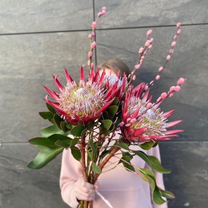 Необычное сочетание вербы розовой и экзотической протеи. Верба является символом светлого праздника Пасхи, а протея внесет интересную изюминку. Букет станет отличным украшением дома, впишется в любой интерьер квартиры или офиса.Для ценителей необычных сочетаний и смелых экспериментов❤️