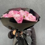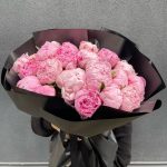 Голландська півонія сорту Sarah Bernhardt в чорному стильному пакуванні.