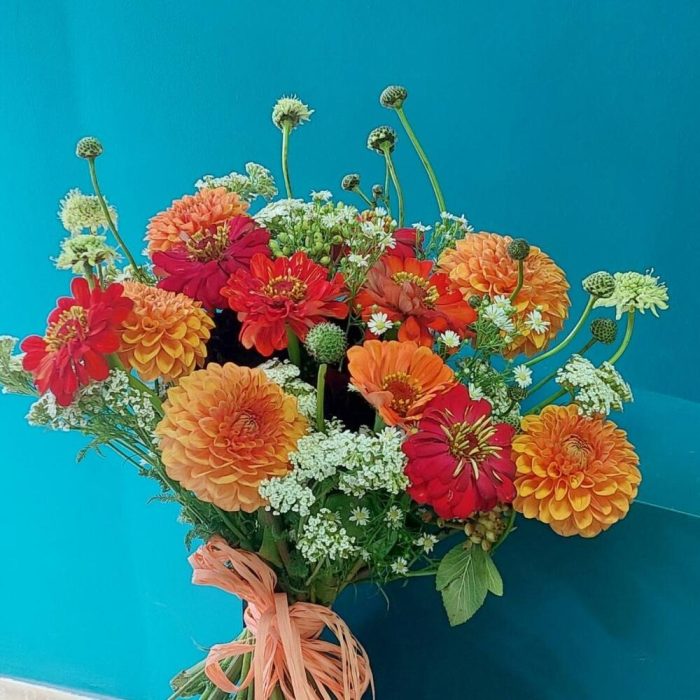 Гвоздики, Георгины, Диантус, Розы, Хризантемы, Эвкалипт