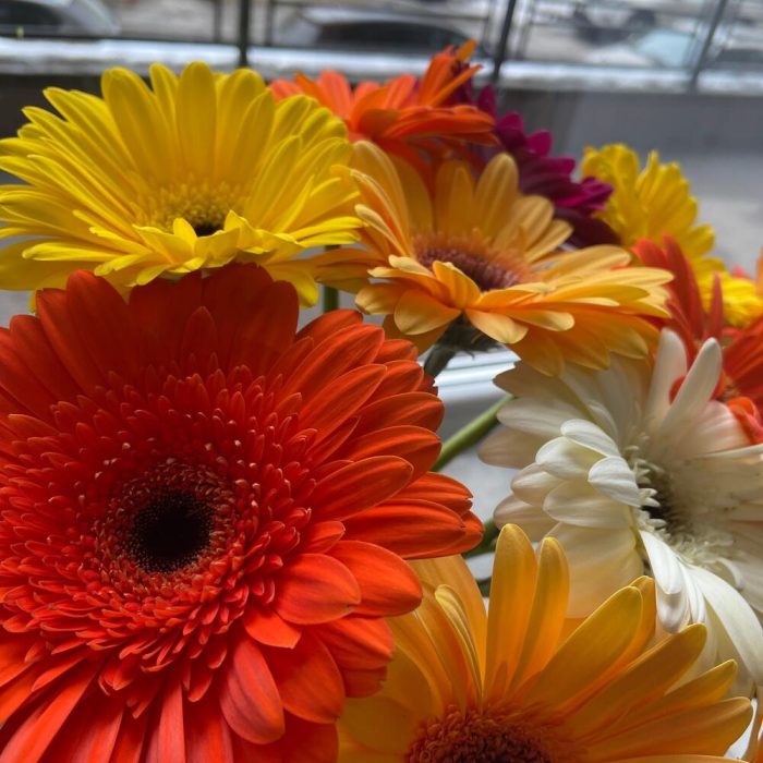 гербера микс – 13 шт.флористическая проволока – 13 шт.Атласная лента – 1 шт.