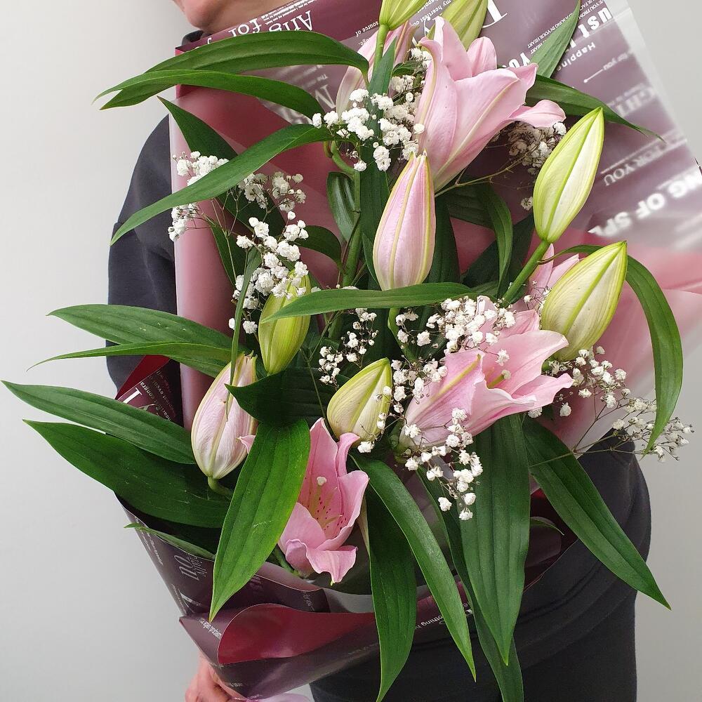 Лилия – 3 шт.Гипсофила – 1 шт.Упаковка дизайнерская – 1 шт.