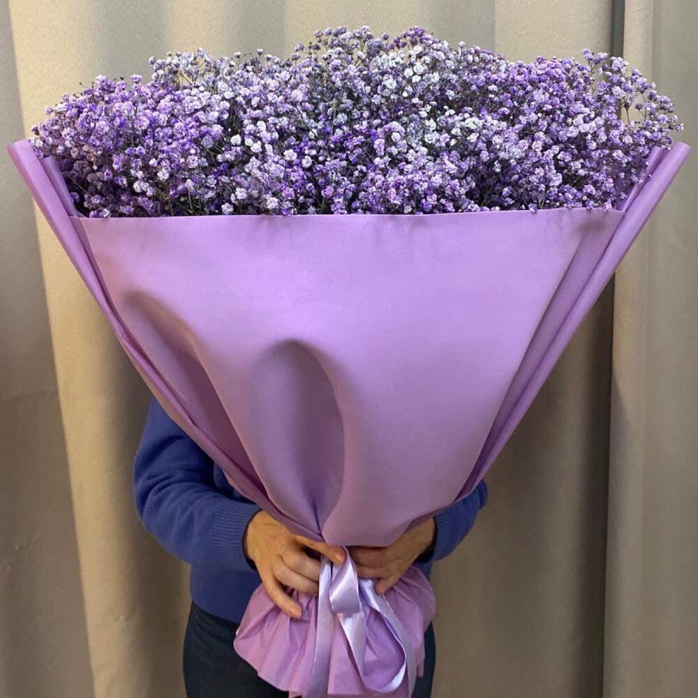 Гипсофила – 25 шт.Упаковка дизайнерская – 3 шт.Лента атласная – 1 шт.
