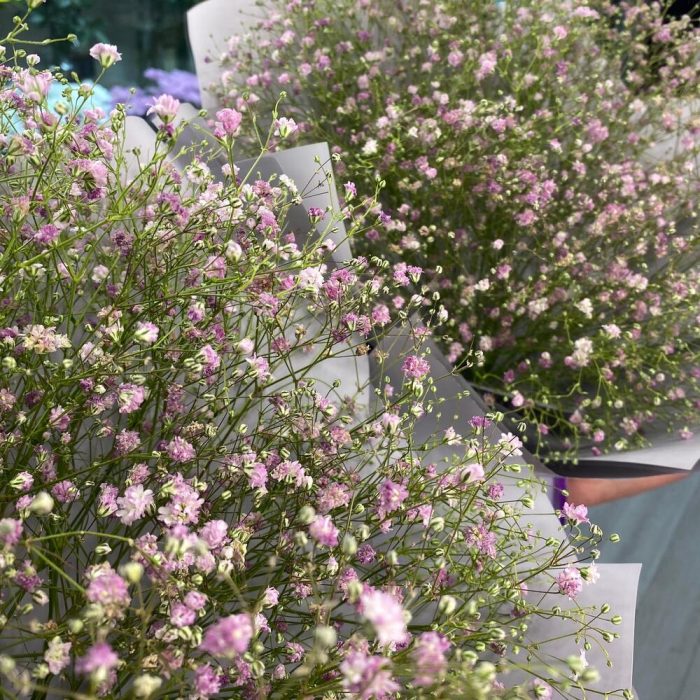 гипсофила сереневая – 4 шт.Упаковка – 3 шт.Лента атласная – 2 шт.