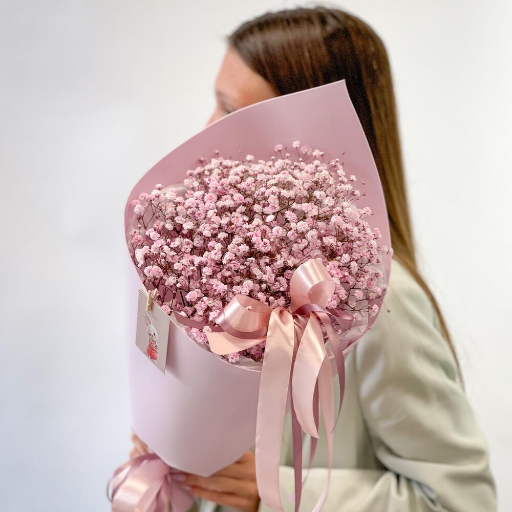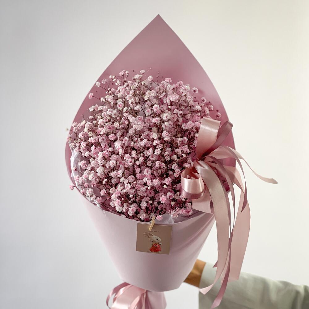 Гипсофила – 3 шт.Лента – 1 шт.Тишью – 1 шт.Упаковка дизайнерская – 1 шт.Открыточка с вашими пожеланиями – 1 шт.