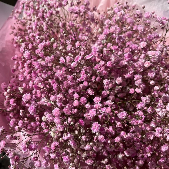 Гипсофила розовая – 7 шт.Упаковка дизайнерская – 2 шт.Открыточка с вашими пожеланиями – 1 шт.