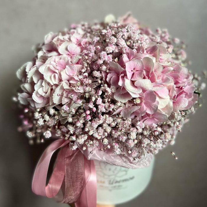 Гортензия в шляпной коробке смотрится очень воздушно, мило и стильно. Так как гортензия объемная, это прекрасный бюджетный и в то же время небанальный вариант.Доставим быстро и бережно.* К сожалению, мы не можем гарантировать 100% копию букета. Ежедневно к нам в салон … Показать ещёприезжают свежие цветы и они могут отличаться друг от друга. Со своей стороны, мы гарантируем соблюсти состав и общий стиль вашего букета. При возникновении вопроса о замене дизайнерской упаковки – мы обязательно свяжемся с вами. Букет из живых цветов мы начинаем собирать после оформления заказа.