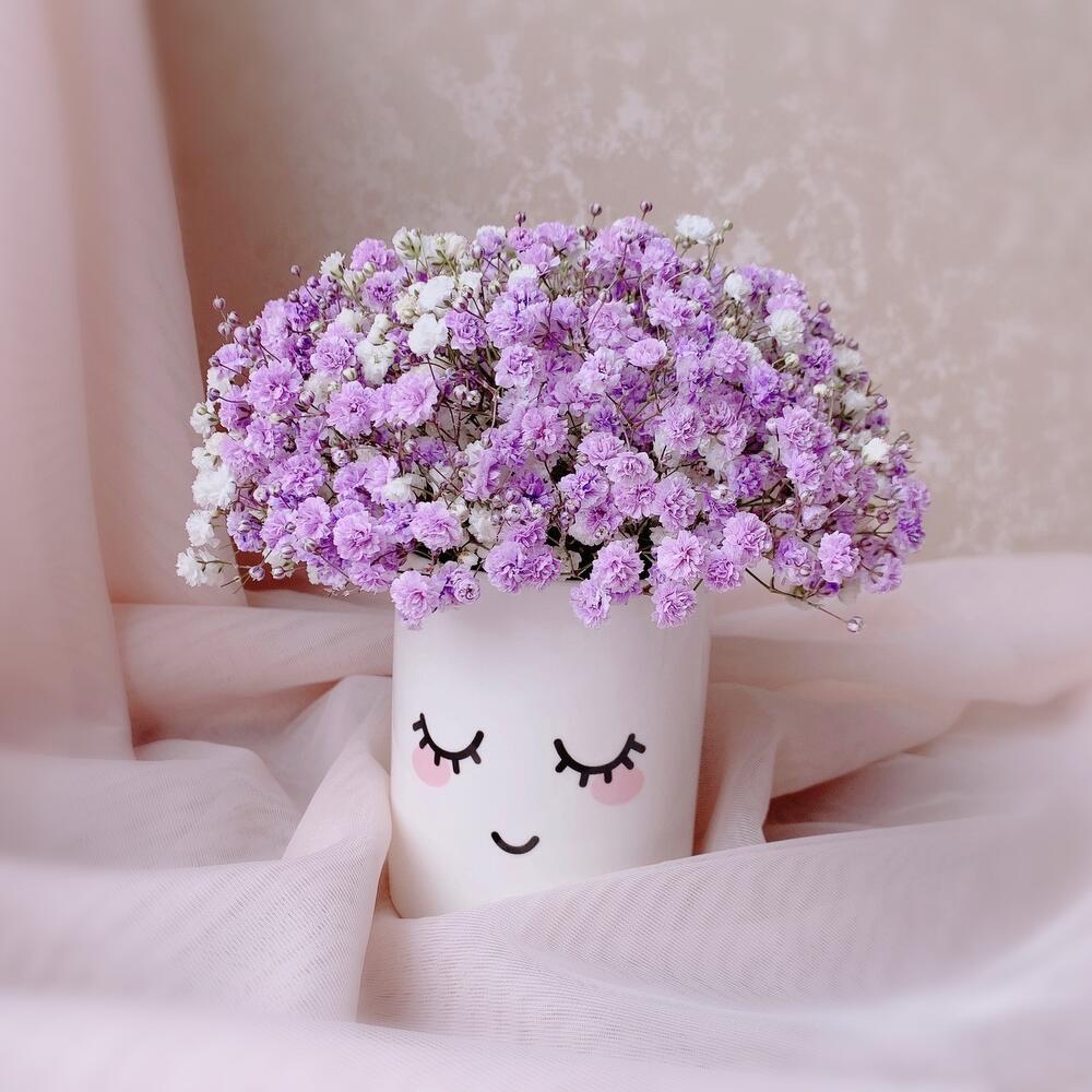Фиолетовая гипсофила в керамическом кашпо