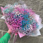 гипсофила радужная – 9 шт.Упаковка дизайнерская – 5 шт.Лента атласная – 3 шт.