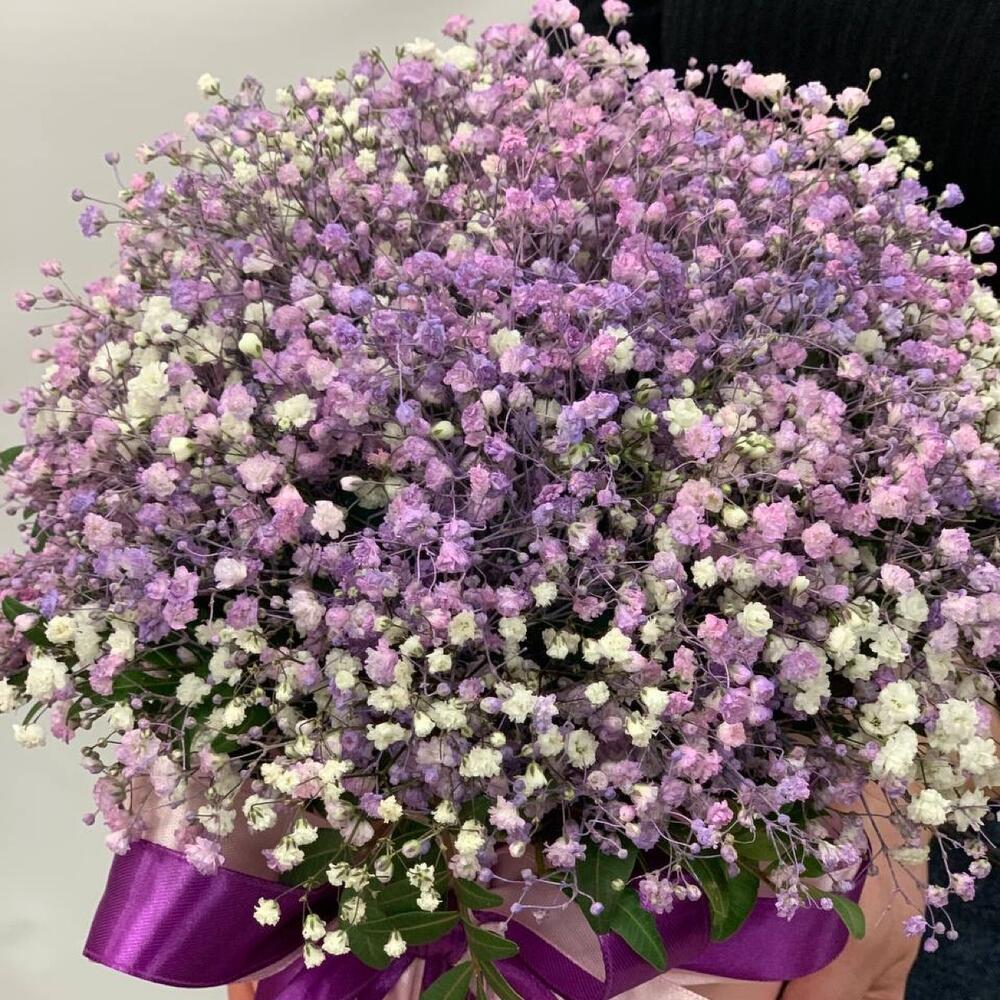 Коробка шляпная – 1 шт.Оазис флористический – 1 шт.Гипсофила – 6 шт.Лента атласная – 1 шт.