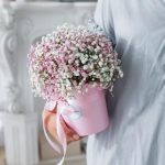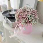 “Сиреневый туман” – композиция из гипсофилы в шляпной коробке