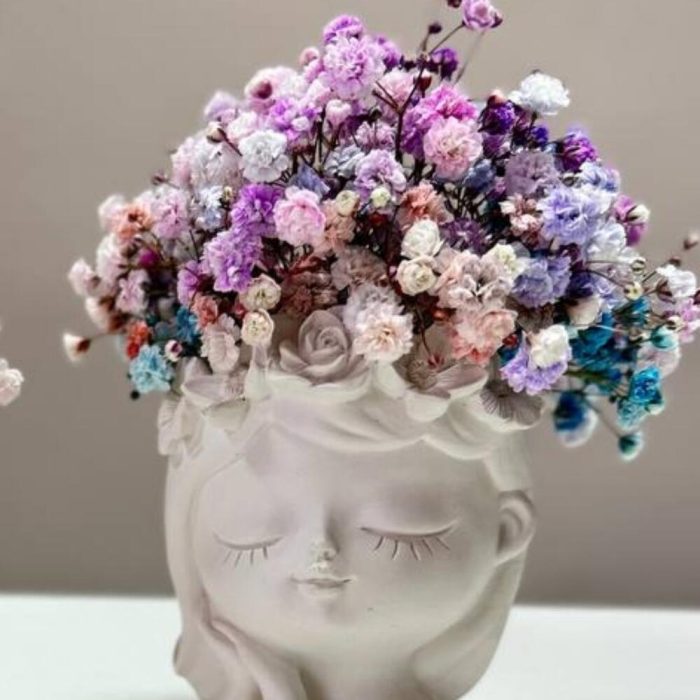 Кашпо из гипса с цветочной гипсофилой