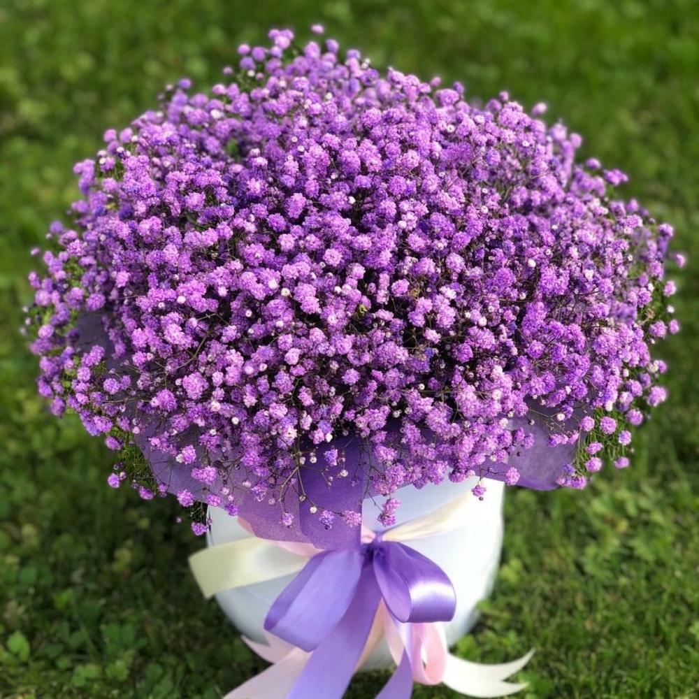 Оазис флористический – 1 шт.гипсофила цветная – 15 шт.шляпная коробка в ассортименте – 1 шт.