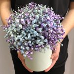 “Сиреневый туман” – композиция из гипсофилы в шляпной коробке