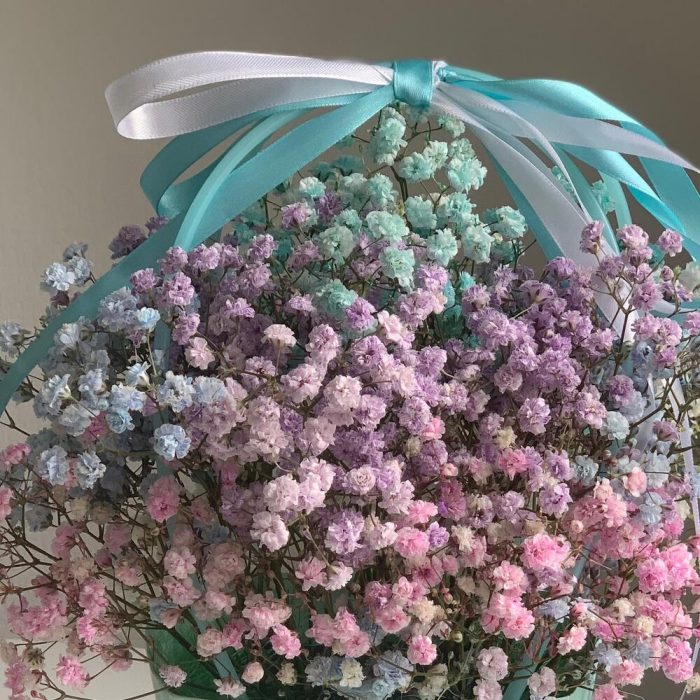 Гипсофила – 7 шт.Оазис флористический – 1 шт.Лента атласная – 2 шт.Сумочка картонная – 1 шт.