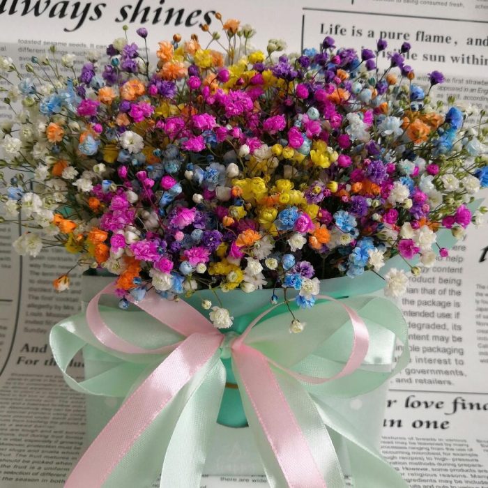 Радужная гипсофила в керамическом кашпо «Стегозавр»