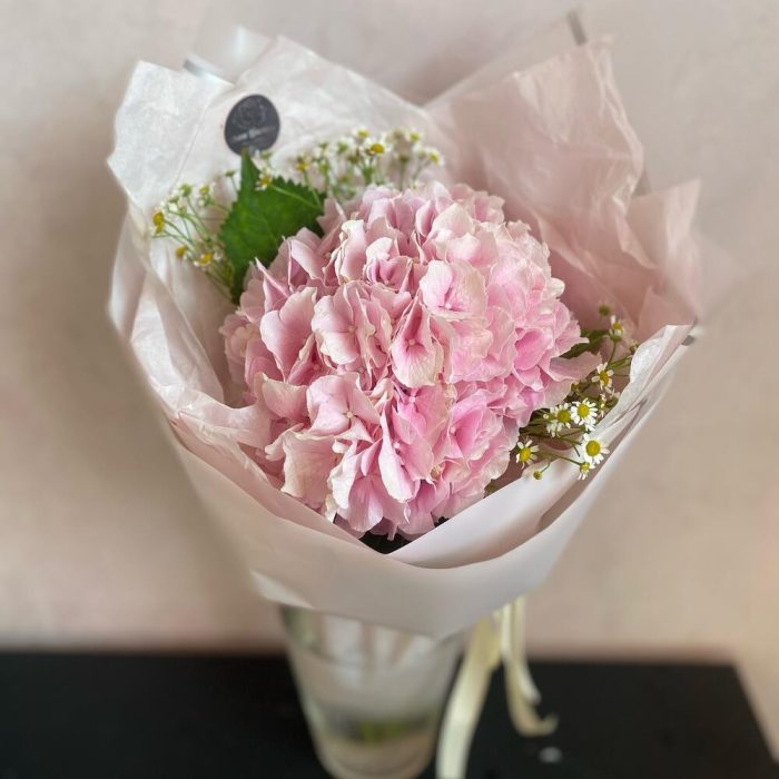 Букет с гортензией и ромашкой