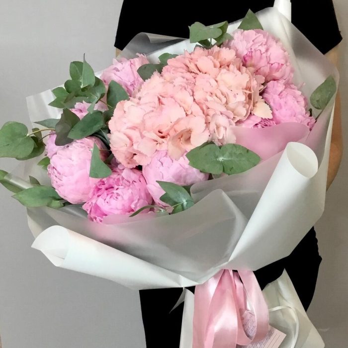 Букет с пионами и гортензией “Мечта”