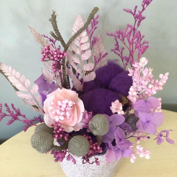 «Лавандовое созвездие» Букет из розы, гвоздики, статица и хлопка