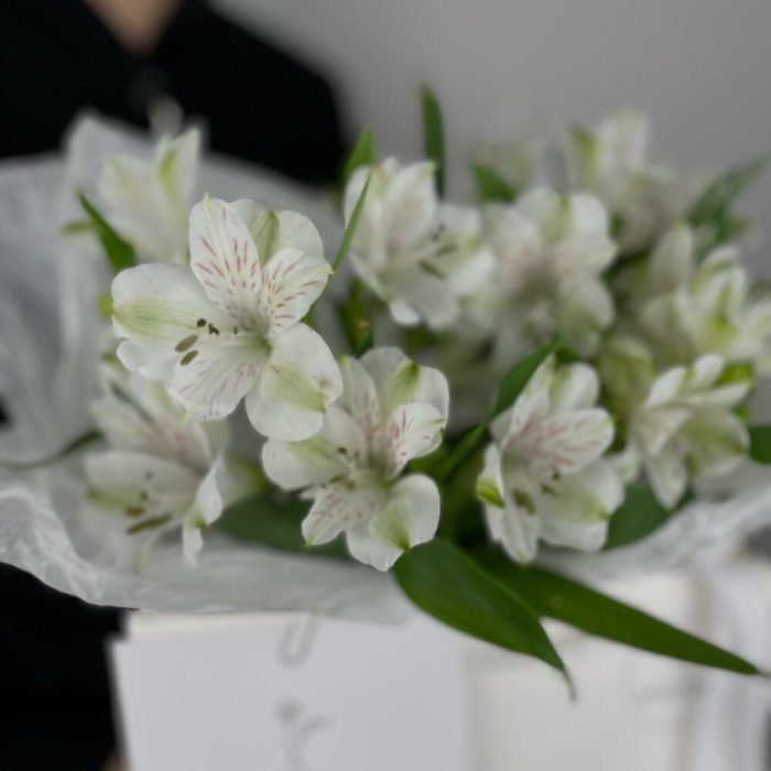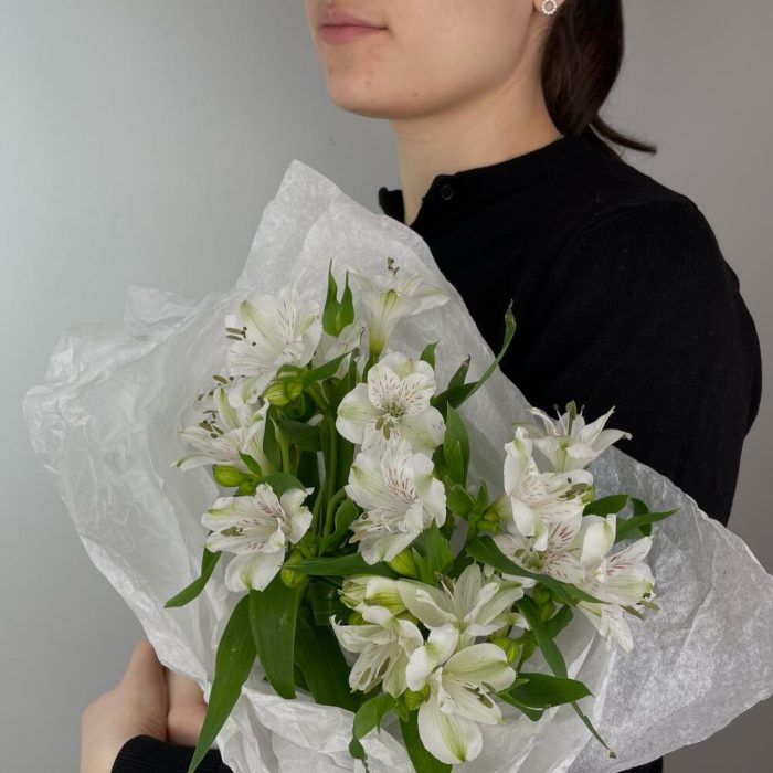 Альстромерия – 5 шт.Тишью – 2 шт.Лента кружевная – 1 шт.подкормка для срезанных цветов – 1 шт.инструкция по уходу за цветами – 1 шт.любовь флориста – 1 шт.записка с вашим текстом – 1 шт.сумка пакет для цветов – 1 шт.шоколадный медиант ручной работы – 1 шт.