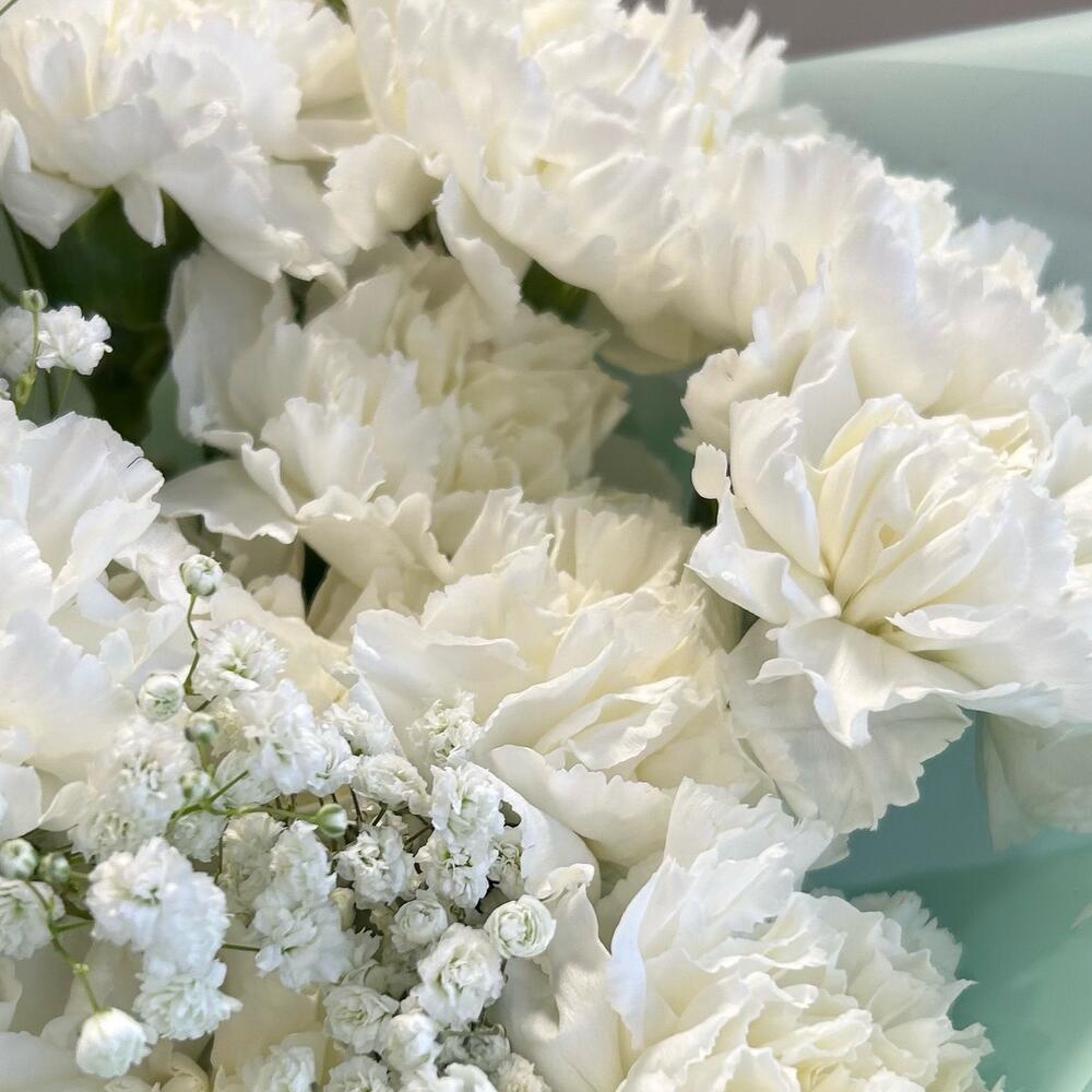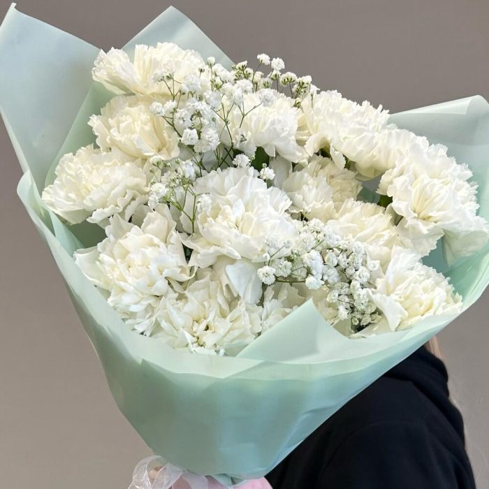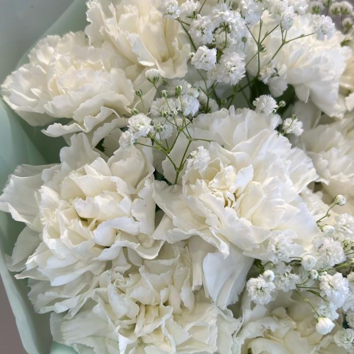 Букет из белой гвоздики и гипсофилы «Белоснежное облако»