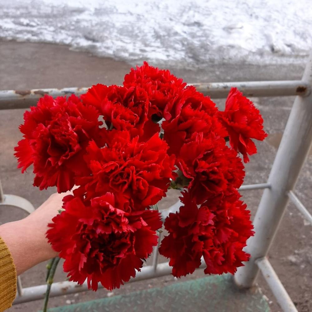 Букет из девяти красных гвоздик "День Победы"