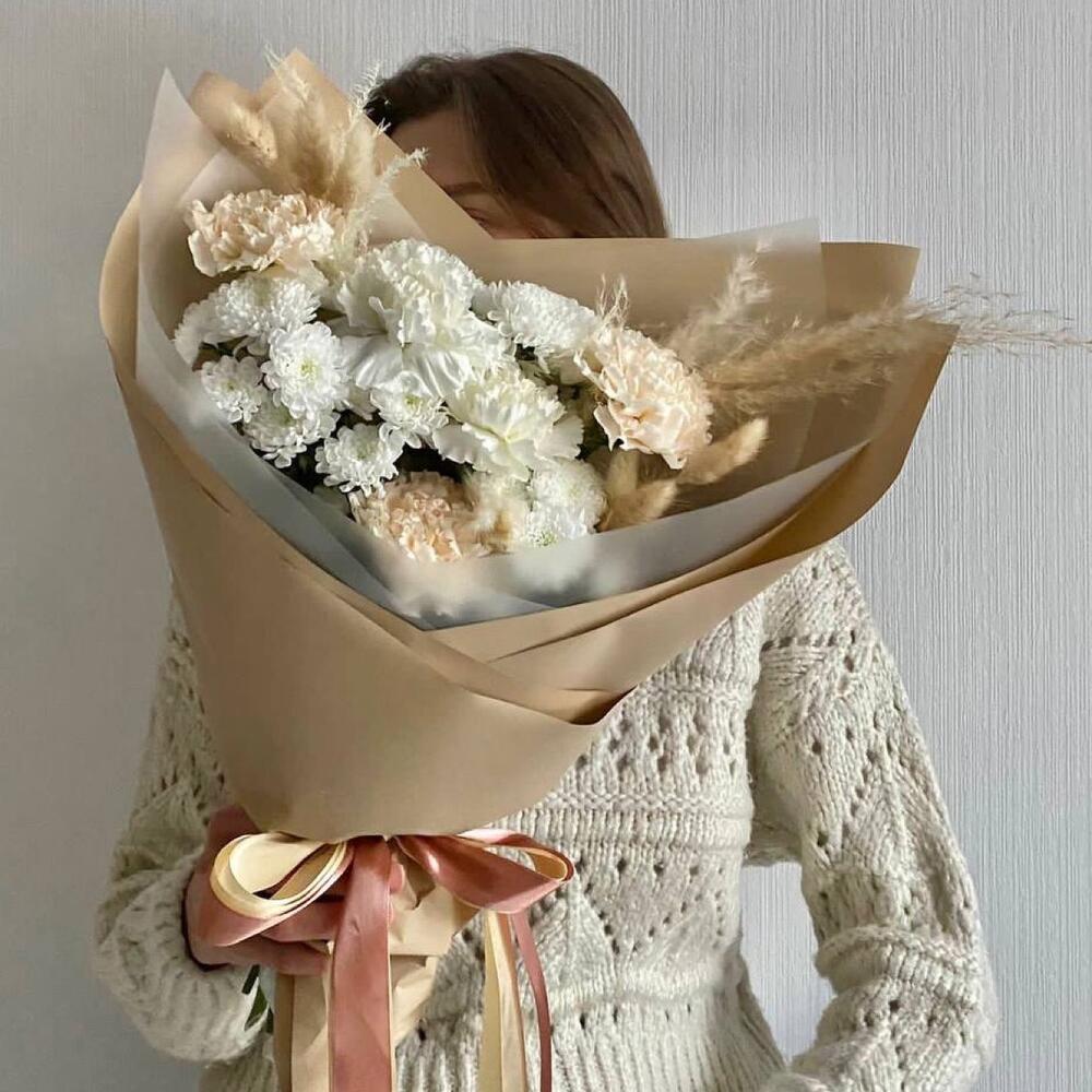 Хризантема – 5 шт.Диантус – 5 шт.Сухоцветы – 2 шт.