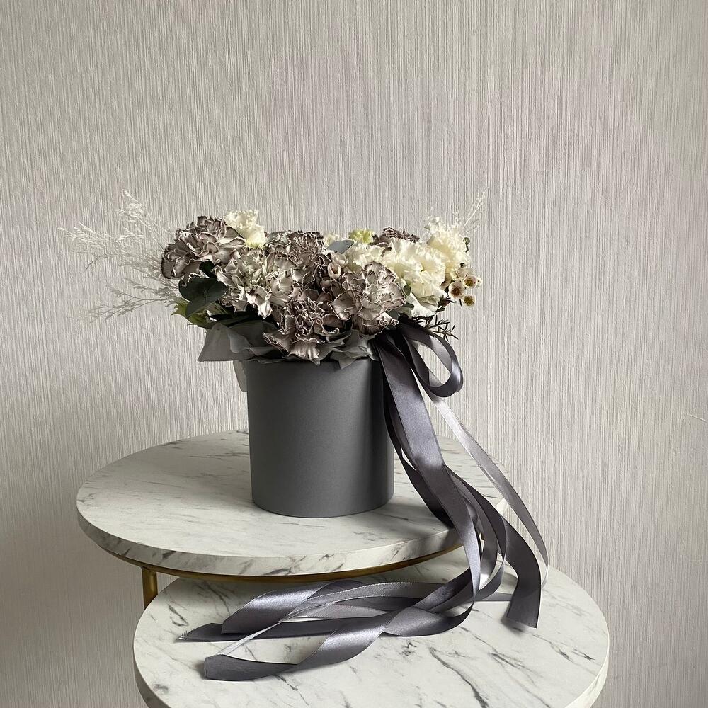 Ваксфлауэр – 1 шт.Эустома – 1 шт.Диантус – 8 шт.