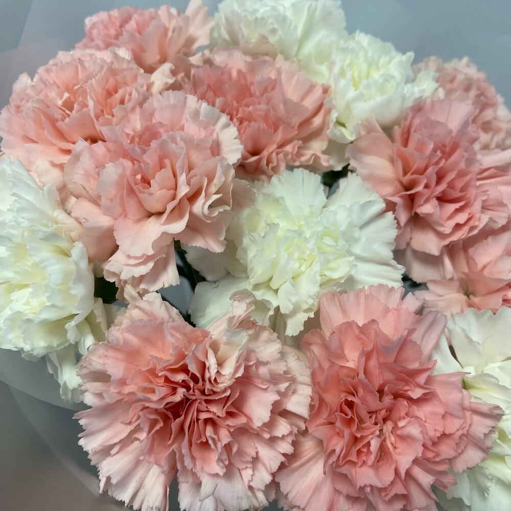 Диантус – 15 шт.упаковка прозрачная матовая – 1 шт.Атласная лента – 1 шт.