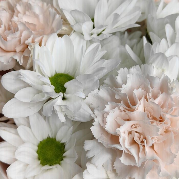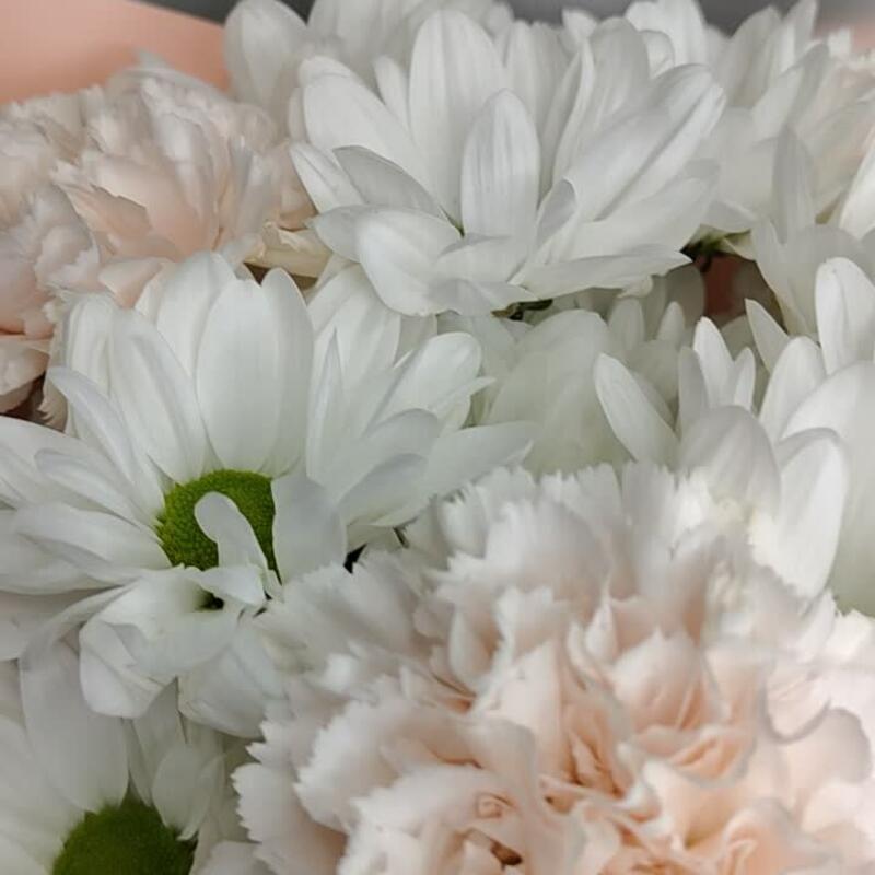 Букет из ромашек и персиковых диантусов “Ваниль”