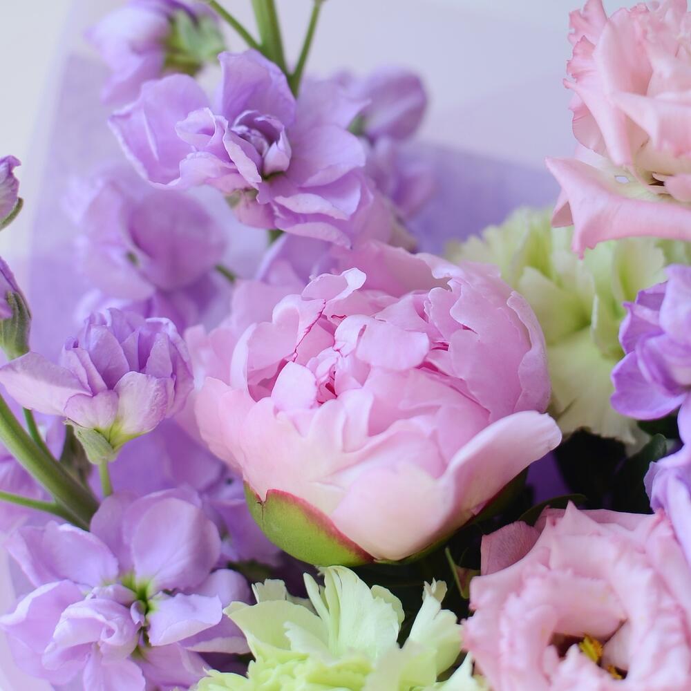 Букет с пионом и маттиолой