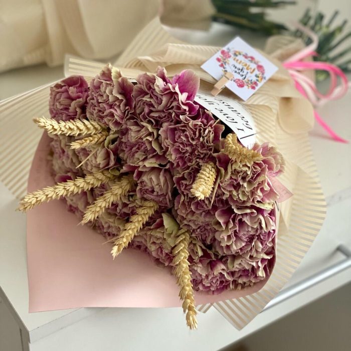 Колосья пшеницы – 5 шт.Гвоздика сортовая – 21 шт.Упаковка дизайнерская – 1 шт.