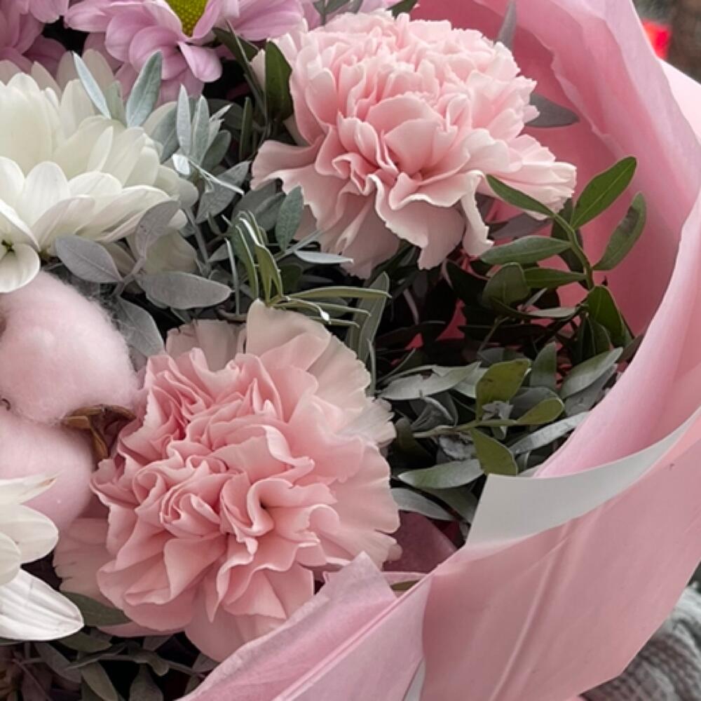 Нежный букет кустовых хризантем с хлопком, будет долго радовать ваших любимых Уважаемые покупатели! Пожалуйста обратите ваше внимание на размер букета при заказе! Он учитывается вместе с упаковкой Чтобы наши прекрасные букеты дольше радовали получателя рекомендуем вам: ⭐Обновить срез букета перед тем, как поставить его в воду⭐Ставить цветы в прохладную проточную воду ⭐Меняйте воду в вазу каждый день⭐Не забывайте подрезать цветы, перед тем, как ставить их в воду⭐Не ставить у отопительных приборов и на сквозняке Фирменный стиль наших букетов разработан специально так, чтобы упаковку не нужно было снимать, так как она придаёт целостность букету и прекрасно держится в вазе