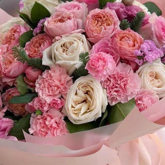 Шикарный розовый букет из роз и диантуса в стильном оформлении для самых нежных Уважаемые покупатели! Пожалуйста обратите ваше внимание на размер букета при заказе! Он учитывается вместе с упаковкой Чтобы наши прекрасные букеты дольше радовали получателя рекомендуем вам: ⭐Обновить срез букета перед тем, как поставить его в воду⭐Ставить цветы в прохладную проточную воду ⭐Меняйте воду в вазу каждый день⭐Не забывайте подрезать цветы, перед тем, как ставить их в воду⭐Не ставить у отопительных приборов и на сквозняке Фирменный стиль наших букетов разработан специально так, чтобы упаковку не нужно было снимать, так как она придаёт целостность букету и прекрасно держится в вазе