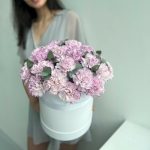 Шляпная коробка фиолетовых гвоздик (N 130)