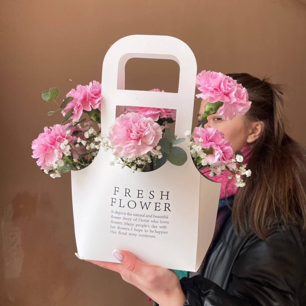 Цвет гвоздик может отличаться от фотоРекомендации по уходу:- цветы находятся во флористической губке, которую необходимо поливать 1 раз в 2-3 дня;- тонкой струёй воды в центре композиции, не попадая на цветы;- держать вдали от отопительных приборов и кондиционеров.