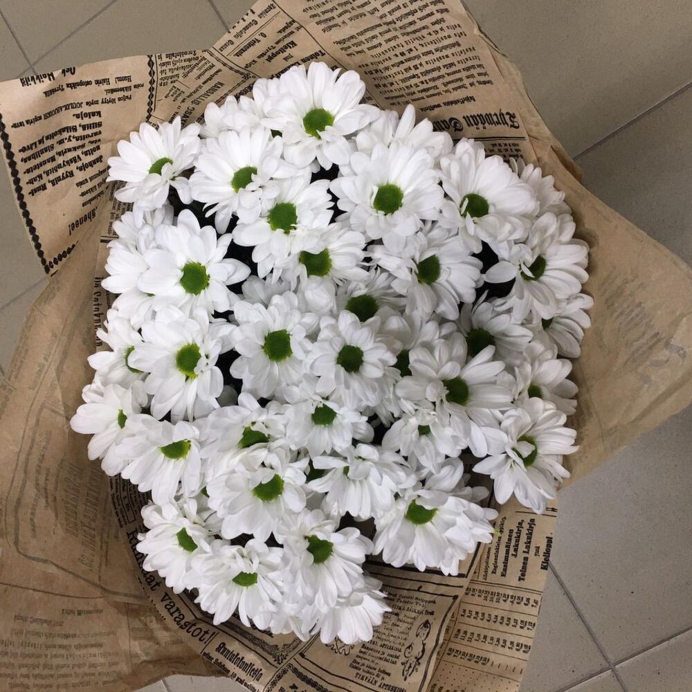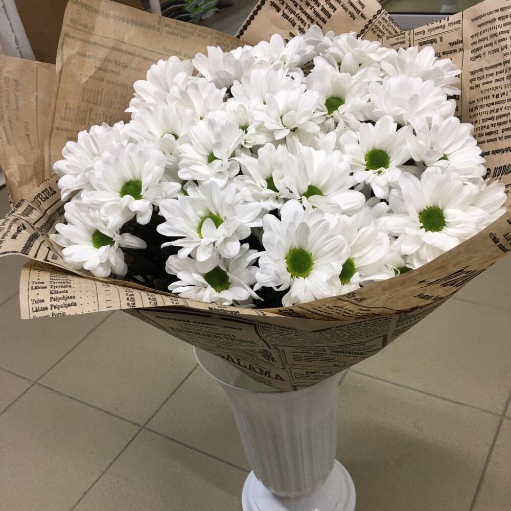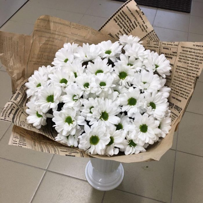 Крафт упаковка – 1 шт.Хризантема Кустовая Бакарди белая – 5 шт.