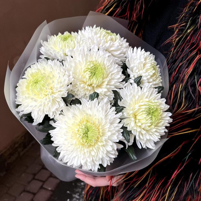 Авторская упаковка – 1 шт.белая одноголовая хризантема – 7 шт.