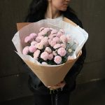 Букет из 15 розовых пионов в дизайнерской упаковке "Принцесса Маргарита"