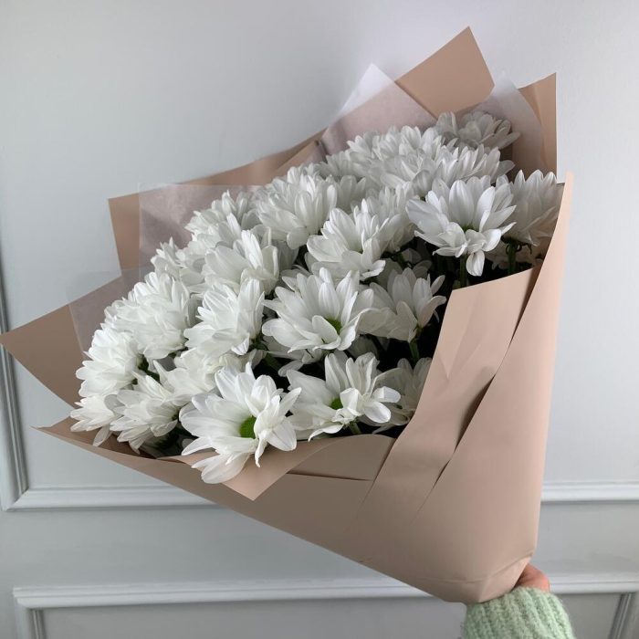 Букет хризантем в упаковке