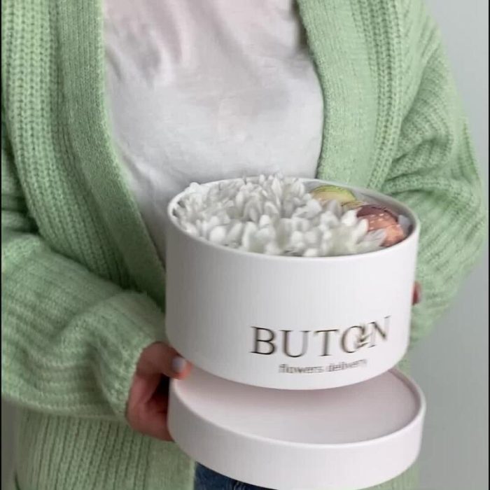 “Атлас☁️” – цветочная композиция с зефиром в деревянном ящике