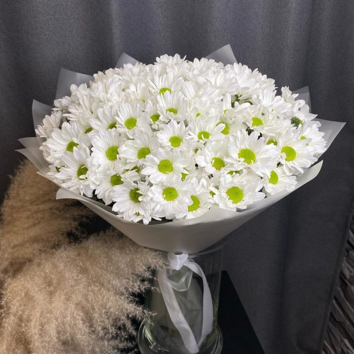 Букет хризантем в нежной упаковке