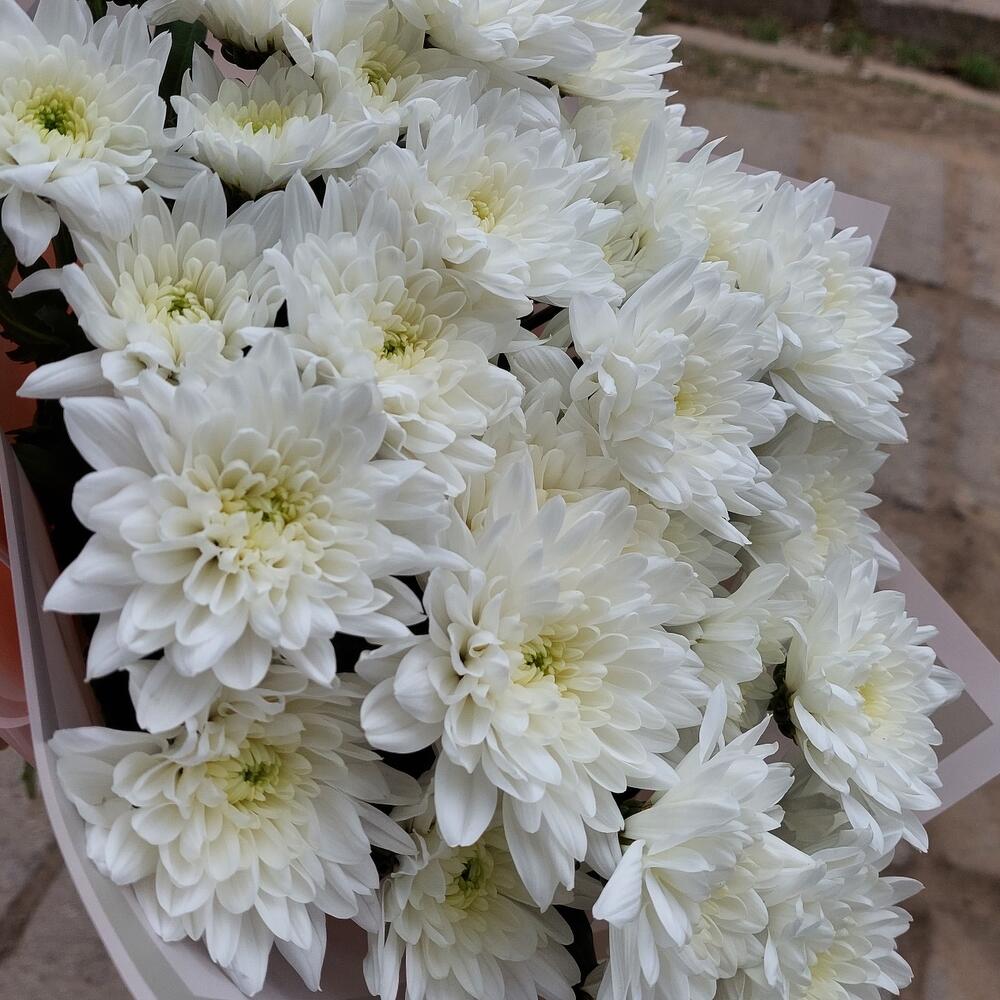Хризантема кустовая – 5 шт.Упаковка дизайнерская – 1 шт.Лента атласная – 1 шт.